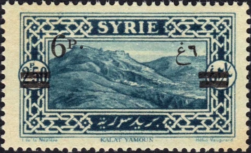 Visibility: public Image owner: none postage 6p issue=1926 provisional dt=landmarks (1925) d=View of Kalat Yamoun ovpt=bars//value oc=blk on=1925-2.50p unwmk Crops No visible images cropped from this one. Measurements Resolution is unknown. Source Source name: Colnect File URL: http://i.colnect.net/images/b/2257/106/New-value-surcharged-on-Definitive-1925.jpg Uploaded February 14, 2015, 2:03 pm by Stan Shebs |