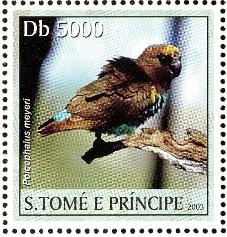 Visibility: public Image owner: none postage 3/1/2003 5000db multi issue=Birds 2004 dt=birds (2004 St. Thomas & Prince Islands) unwmk perf=13.25 Crops No visible images cropped from this one. Measurements Resolution is unknown. Source Source name: Colnect File URL: http://i.colnect.net/b/3685/937/Meyer--s-Parrot-nbsp--nbsp--nbsp--nbsp-Poicephalus-meyeri.jpg Uploaded June 5, 2017, 10:30 pm by Stan Shebs |