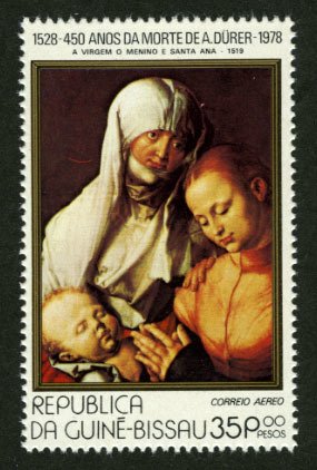 Visibility: public Image owner: none postage 11/14/1978 35.00p multi issue=450th Anniversary of the Death of Albrecht Durer d=Airmail - "Virgin and Child with St. Ann… unwmk perf=13.5 Crops No visible images cropped from this one. Measurements Resolution is unknown. Source Source name: Colnect File URL: http://i.colnect.net/b/3268/709/450-Years-of-the-Death-of-A-Durer.jpg Uploaded June 27, 2017, 1:38 pm by Stan Shebs |